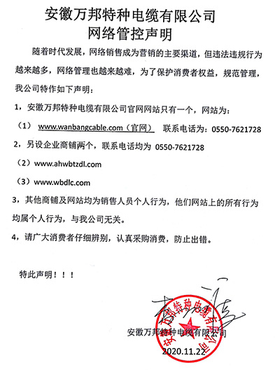鄭重聲明:安徽萬邦特種電纜有限公司官方網站為:www_wanbangcable_com.sheetmetal-fabricating.com,除此之外無任何子網站或合作網站,其余均為假冒偽劣。電話:0550-7621728 13485756353 地 址:安徽省天長市滁州高新技術產業開發區經四路29號